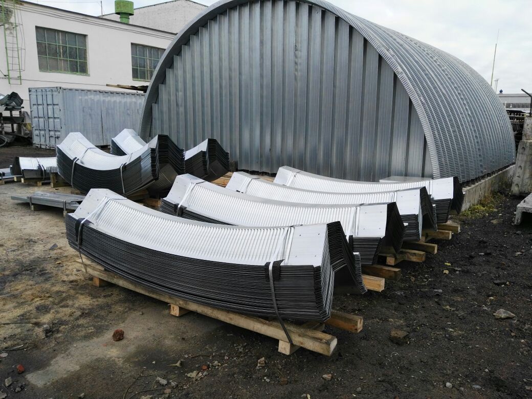 Ангар поставляется в заводской упаковке промаркирован и укомплектован. Все панели и комплектующие уложены в пачки и помещены на палетт.